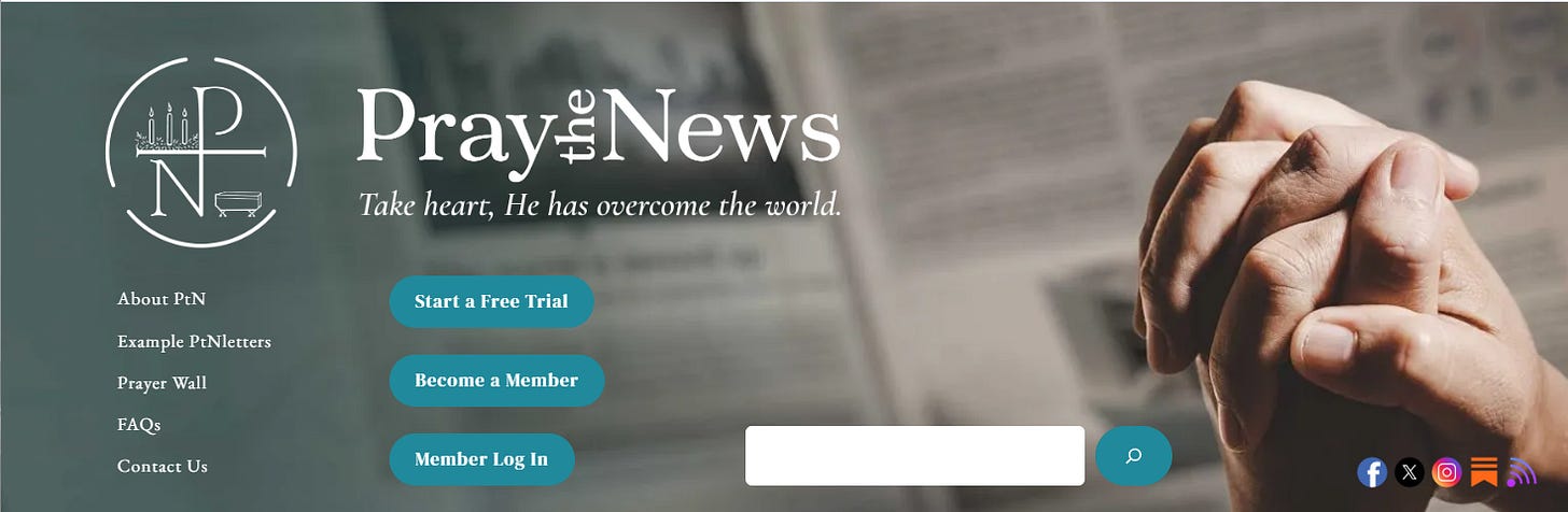 Pray the News would be a great Christmas gift for those who are troubled or overwhelmed by the daily deluge of news the Internet brings. It’s only $60 for a year, and $80 for two years, at Become a Pray the News Member . You can also sign up for a 7-day free trial.